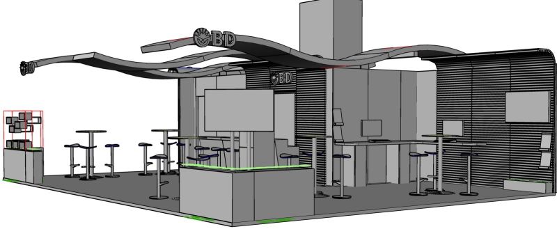 Grace à ses outils de conception CAO/DAO en 3D, CDO STAND vous fournit des images de synthèse vous permettant d'apprécier design et volume de votre stand avant sa mise en fabrication.